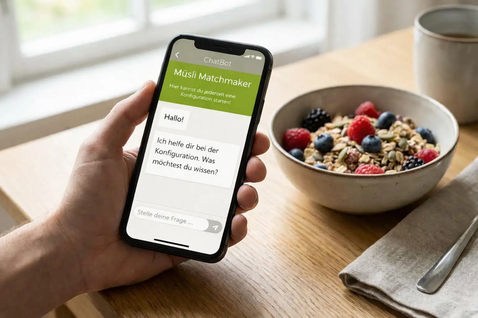 Der Berater zeigt dir mehrere passende Optionen aus unserem Sortiment. So kannst du das Müsli auswählen, das am besten zu deinem Geschmack passt.